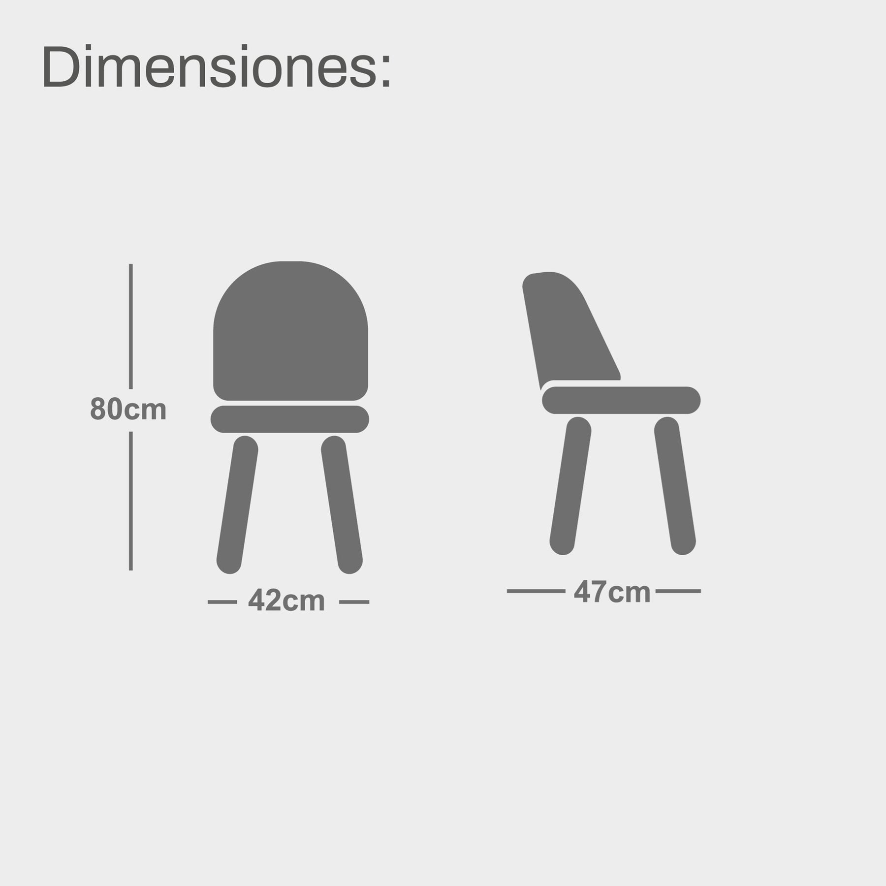 📏 Medidas: 42 cm de ancho x 47 cm de fondo x 80 cm de alto, perfectas para cualquier mesa de comedor.