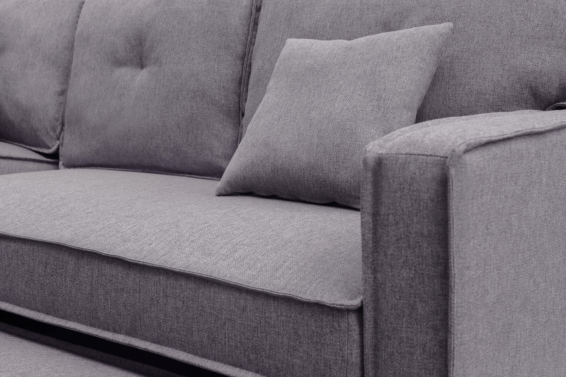 El Chaise Longue cama DAX es la solución perfecta para quienes buscan un sofá elegante, práctico y versátil. Su diseño moderno en tapizado tela Malmo color gris encaja en cualquier salón, aportando estilo y comodidad en tu día a día.