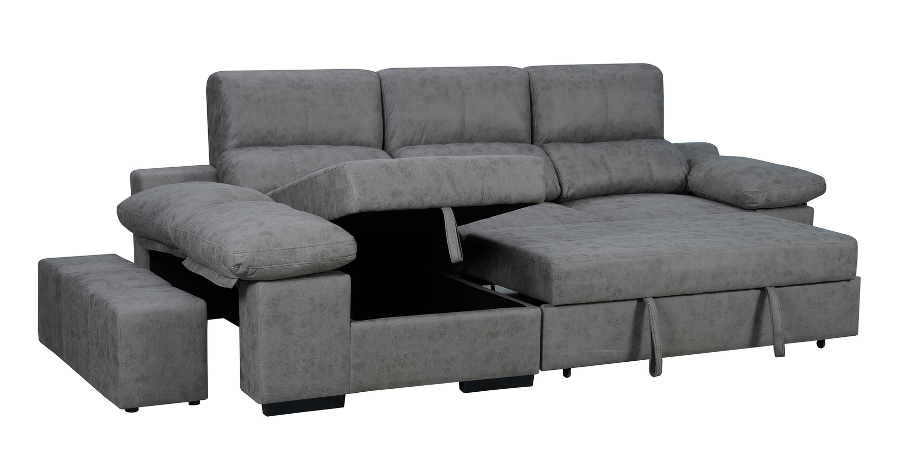 Este modelo destaca por su sistema de apertura que lo convierte en cama en segundos, ofreciendo un descanso cómodo para ti o para tus invitados. Además, incluye un arcón de gran capacidad en el módulo chaise longue, ideal para guardar mantas, cojines o lo que necesites.