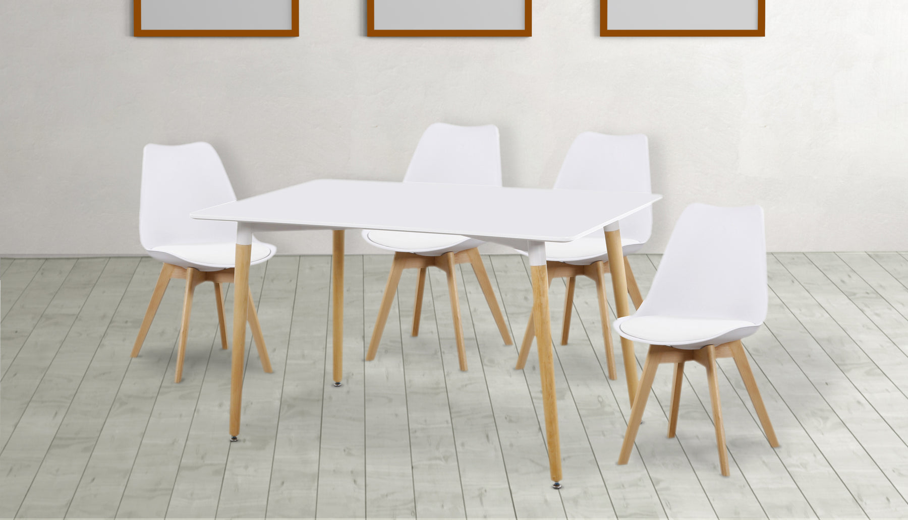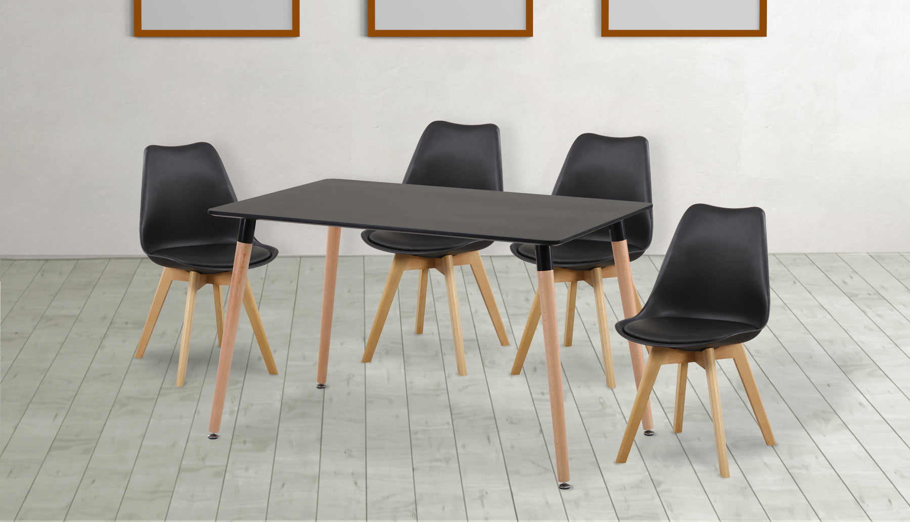 El Conjunto DINAMARCA combina elegancia, funcionalidad y resistencia, ideal para crear un comedor con estilo contemporáneo y un toque escandinavo. Este juego incluye mesa rectangular + 4 sillas, perfecto para familias y reuniones.